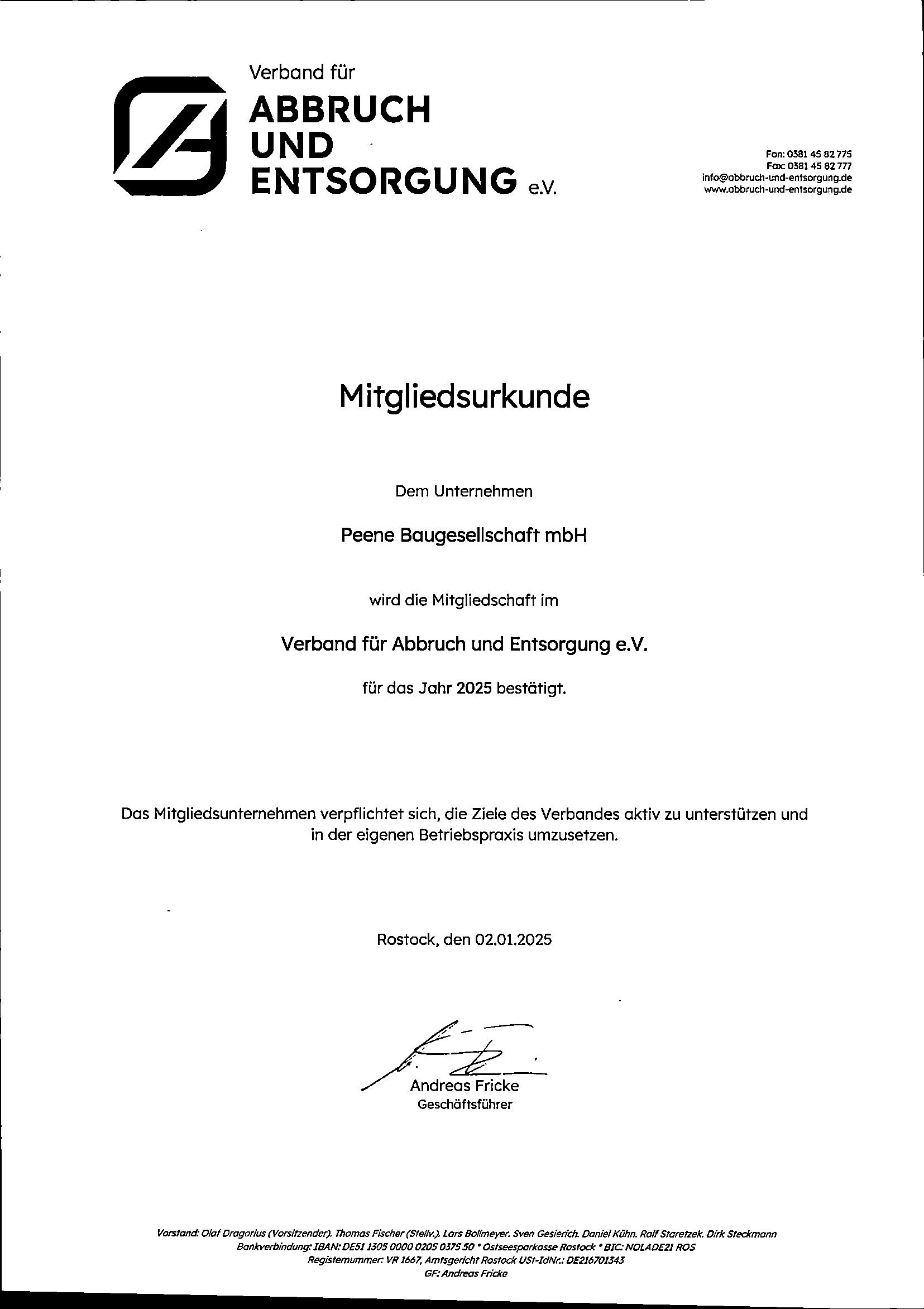 Wenn Sie Fragen zu unseren aktuellen Zertifizierungen haben oder Sie eine Kopie für Ihre Projektunterlagen benötigen, schreiben Sie uns gerne eine E-Mail oder lassen Sie uns telefonieren – 039956 / 2500.